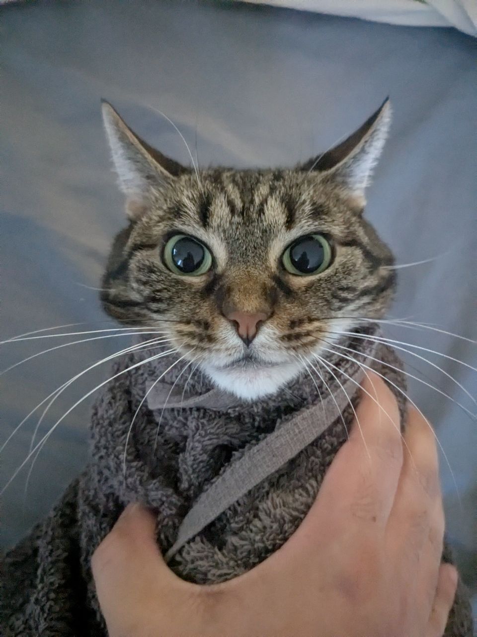 She did NOT like being rolled up in a towel