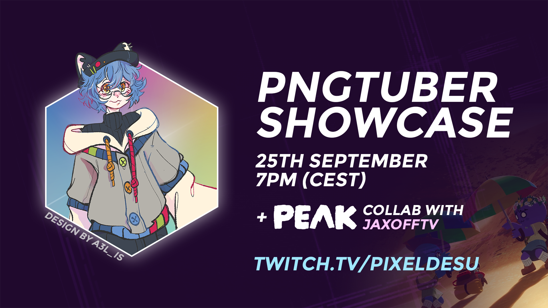 Debuting my PNGtuber on Twitch this Thursday, following up with a PEAK collab with JaxOffTV/Twitch.