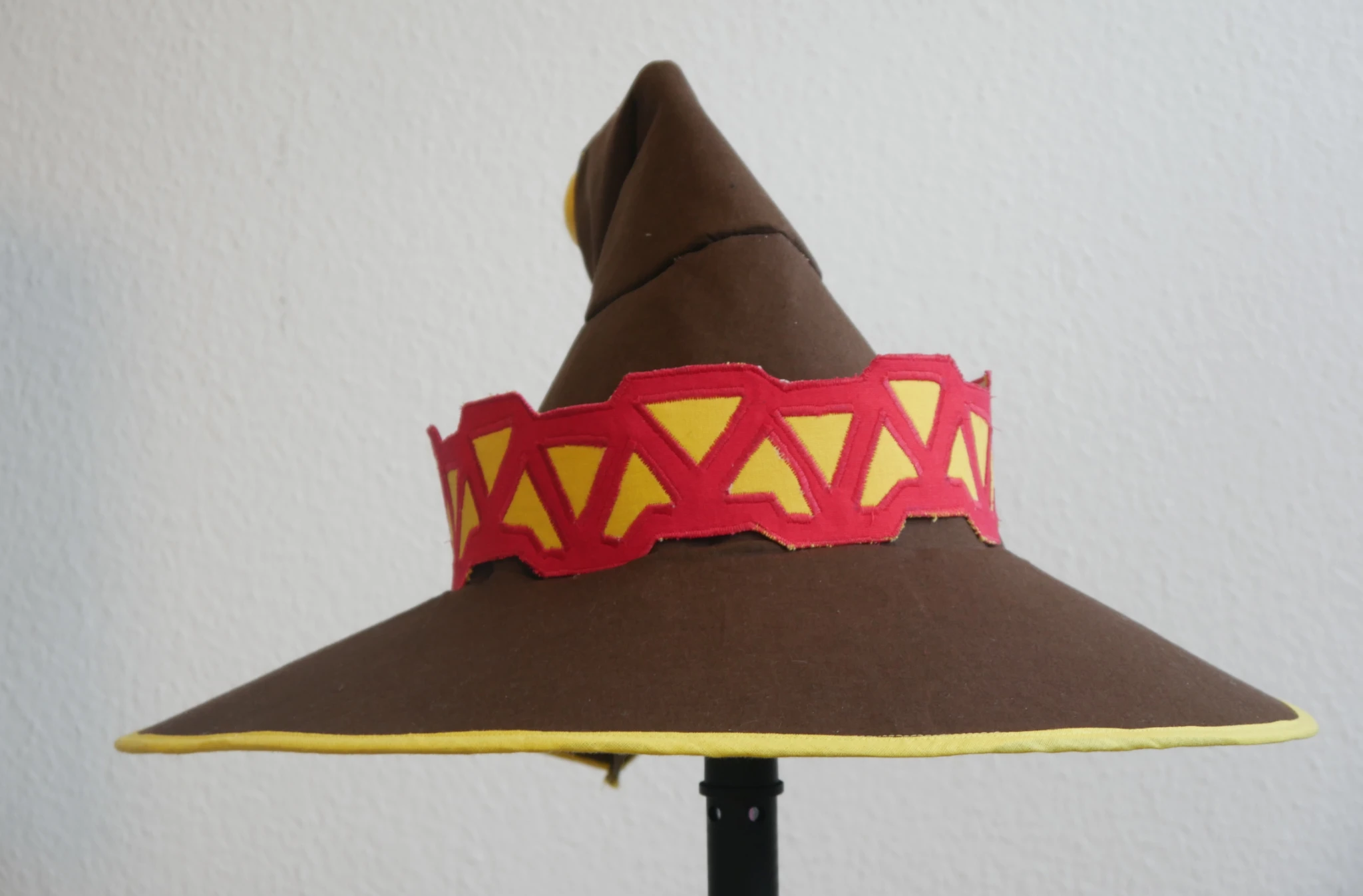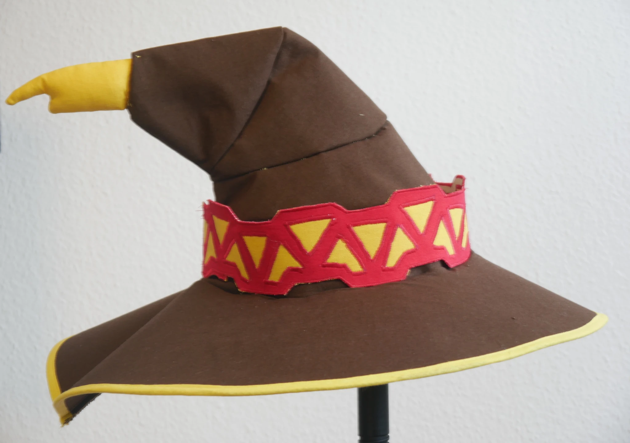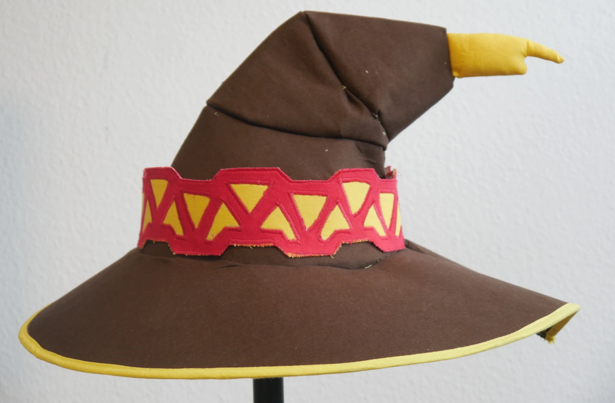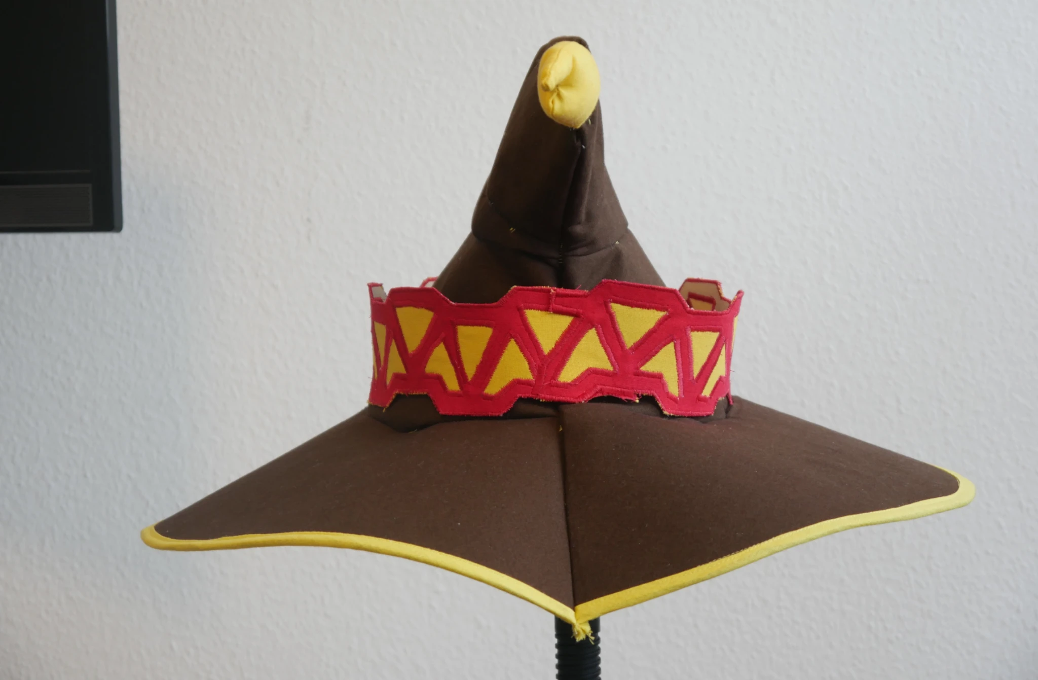 The yellow thing at the back of the hat should actually hang down but I could not attach that last brown piece to the tip. So I did not and just attached the thingie to the back so it looks maybe a little odd sticking out.