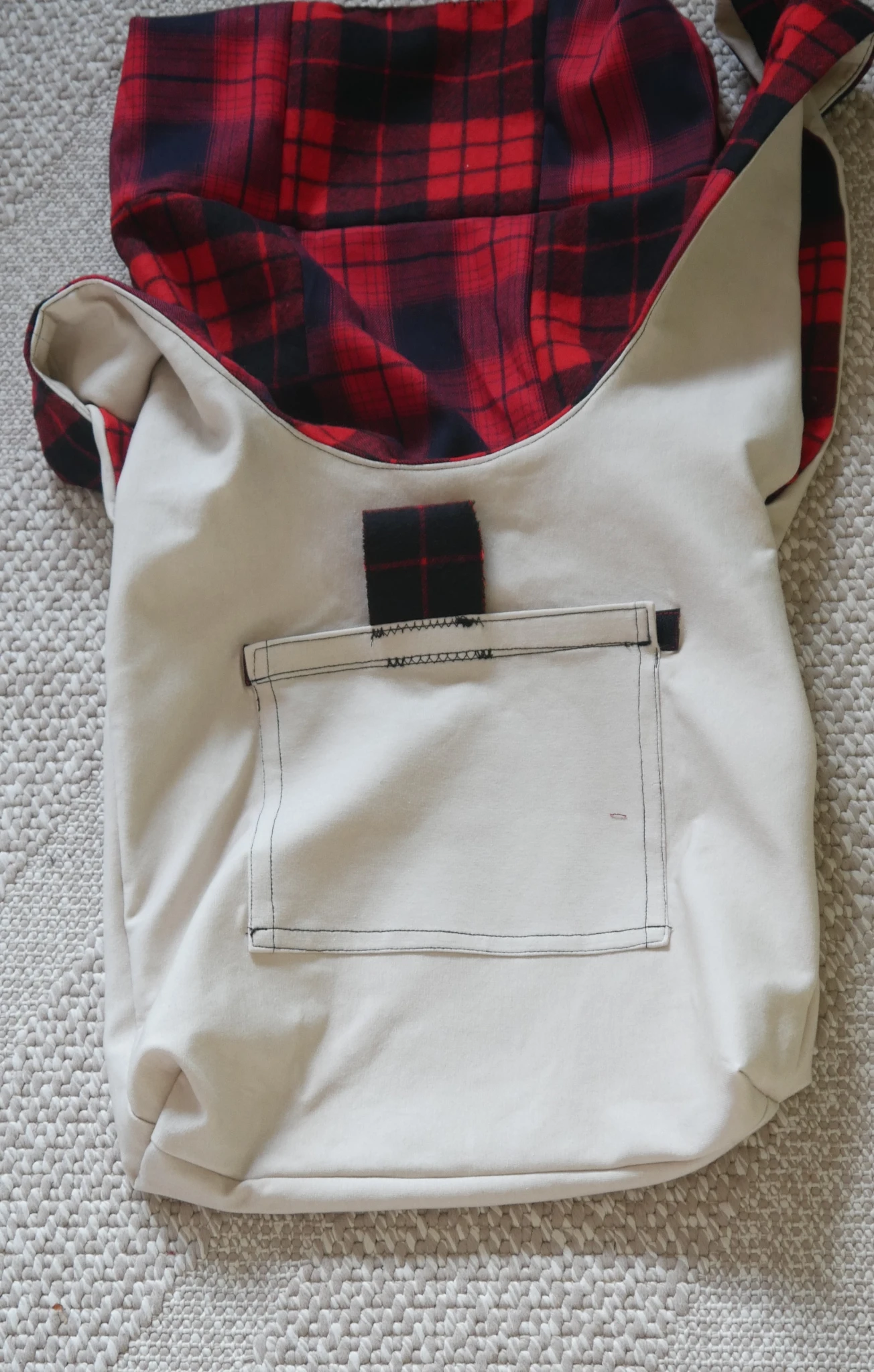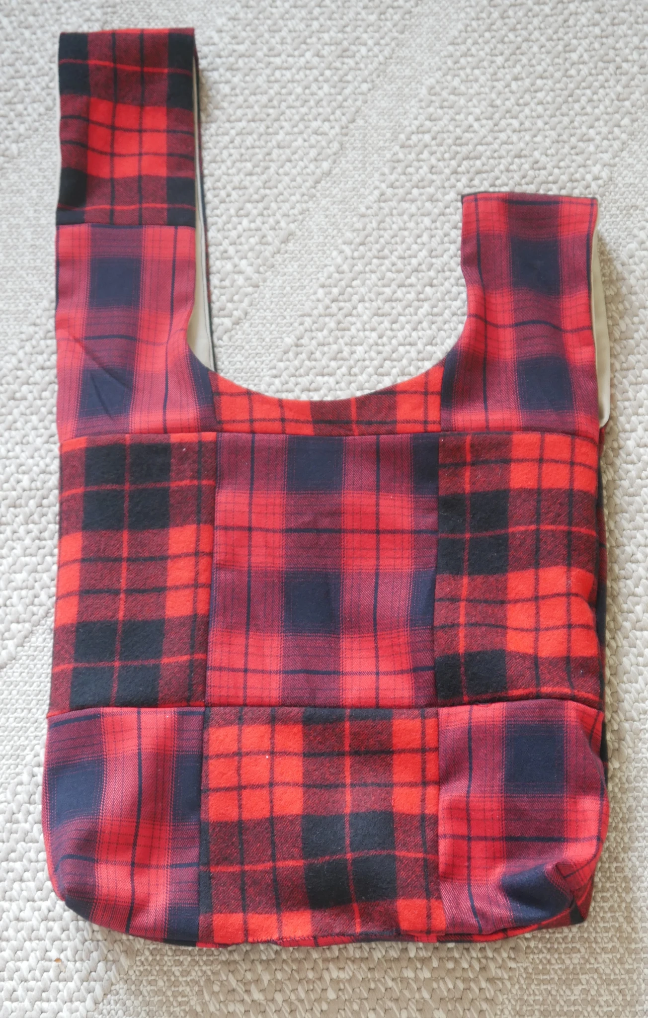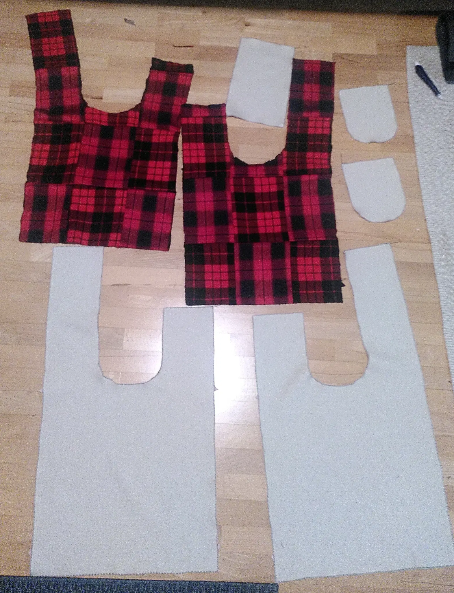 The outer shell is made of red tartan/checker fabric I quilted together from the panels I had left from the Lolita-Skirt. So those came to good use.
