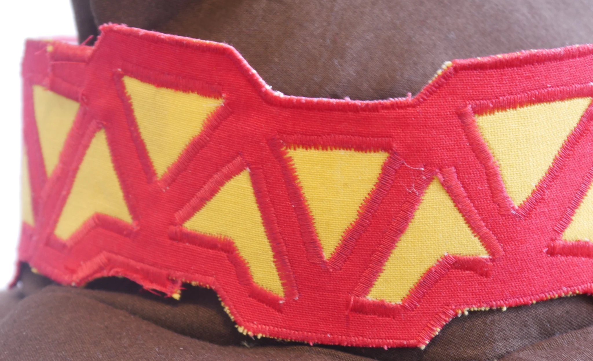 The one thing I really liked although its kinda tedious was that headband. its bascially made of 3 layers of fabric (2 yellow, 1 red) and 1 Layer of Decovil I Light. The yellow fabrics were sewn together and the red one was attached with Vlisofix (used for applique) to make it pretty I used a very short stitch (used for buttonholes normally).