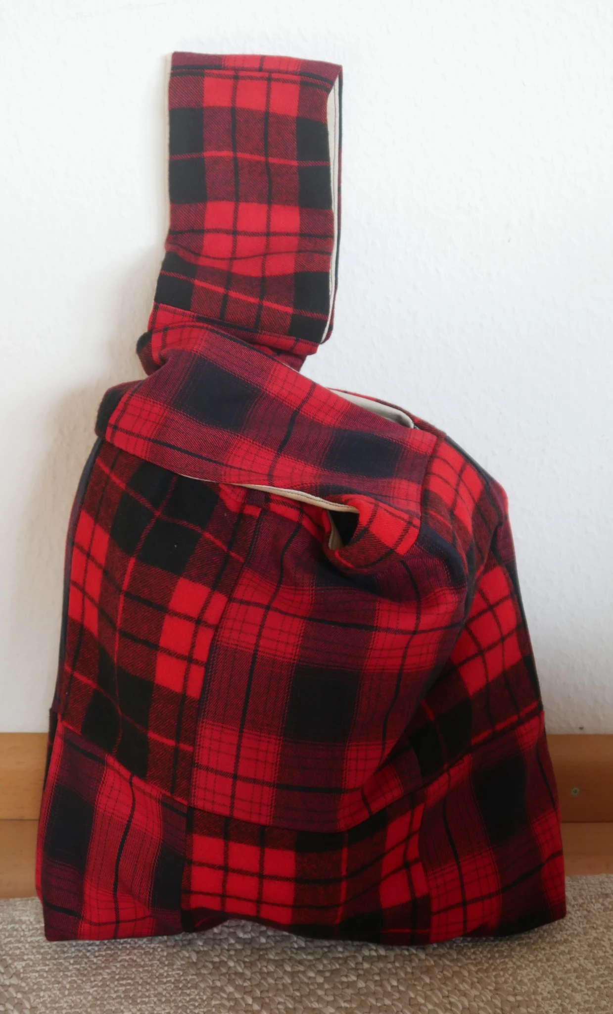 I found a pattern for it when I was shopping at House of Kimono (the shop where I also bought the pattern for the kimono pattern) I found this pattern for the knot bag on there as well.