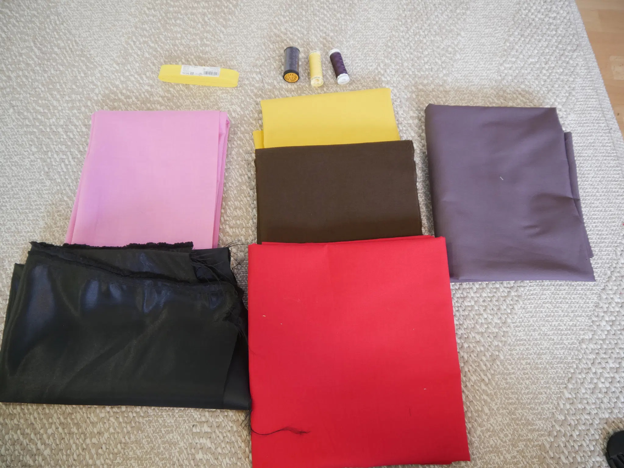 The yellow, red and brown fabric will be turned into a Megumin-Hat. Looking forward to that one lol. The pattern for the Megu-Hat was made by Tiffany Gordon Cosplay: https://www.tiffanygordoncosplay.com/patterns/megumin-hat-from-konosuba