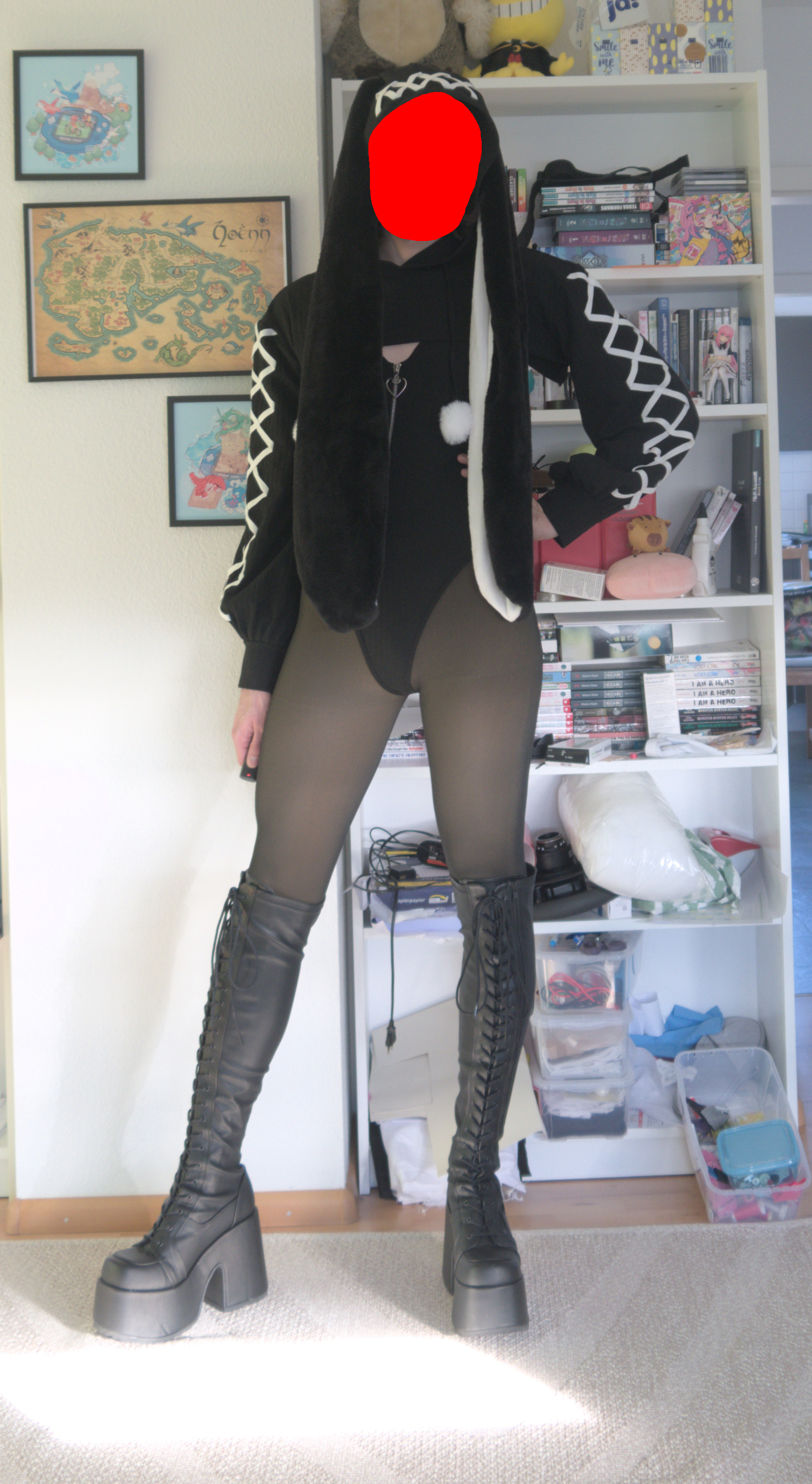 I really came to like that outfit with its big floppy ears a lot. The only thing needed was some tailoring on that body-piece (its a 2-piece set cosisting of a body and really short hoodie).